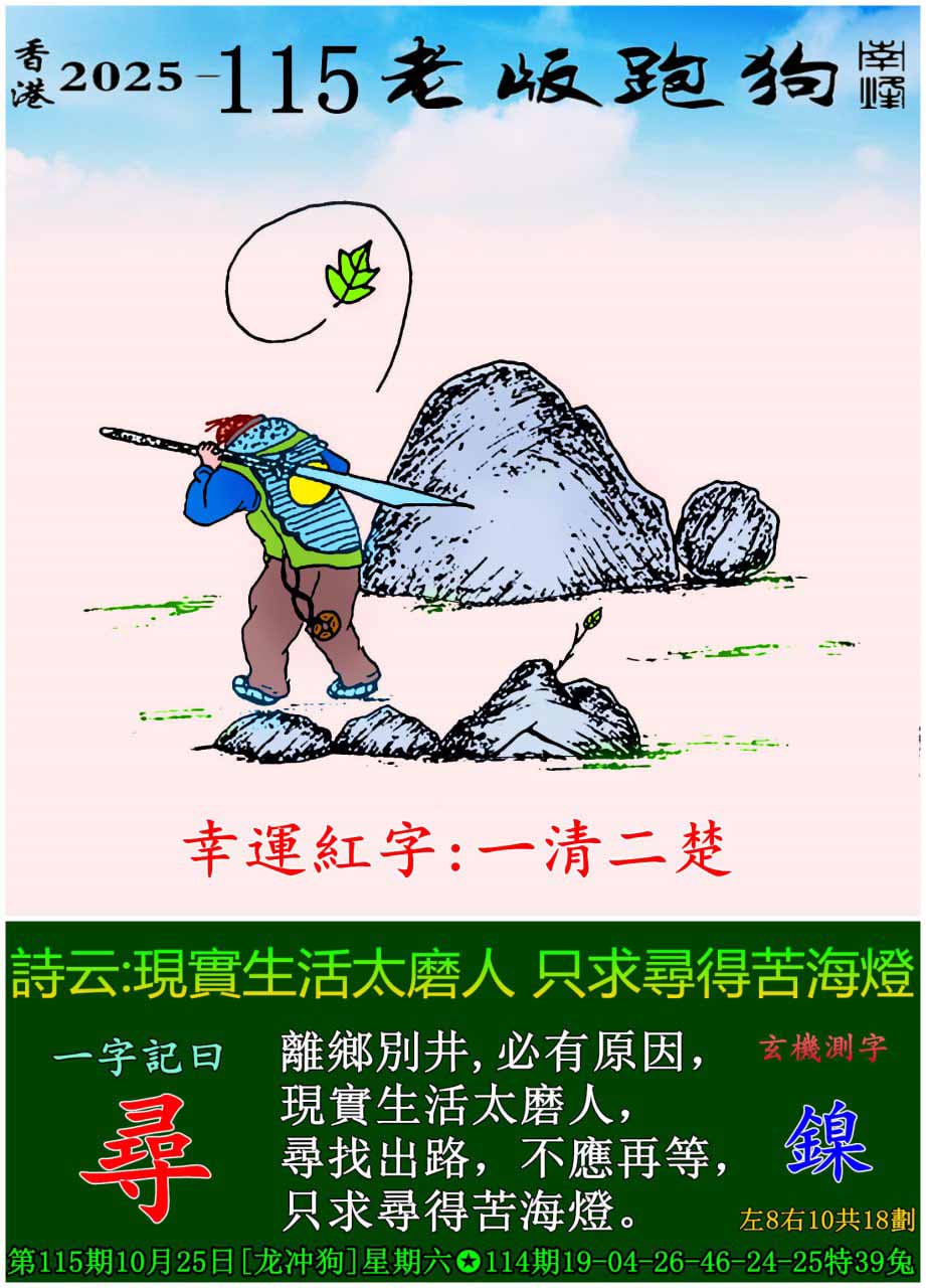 | 主题 :115期老版跑狗一字記之曰:【尋】 玄機測字:《鎳》 |