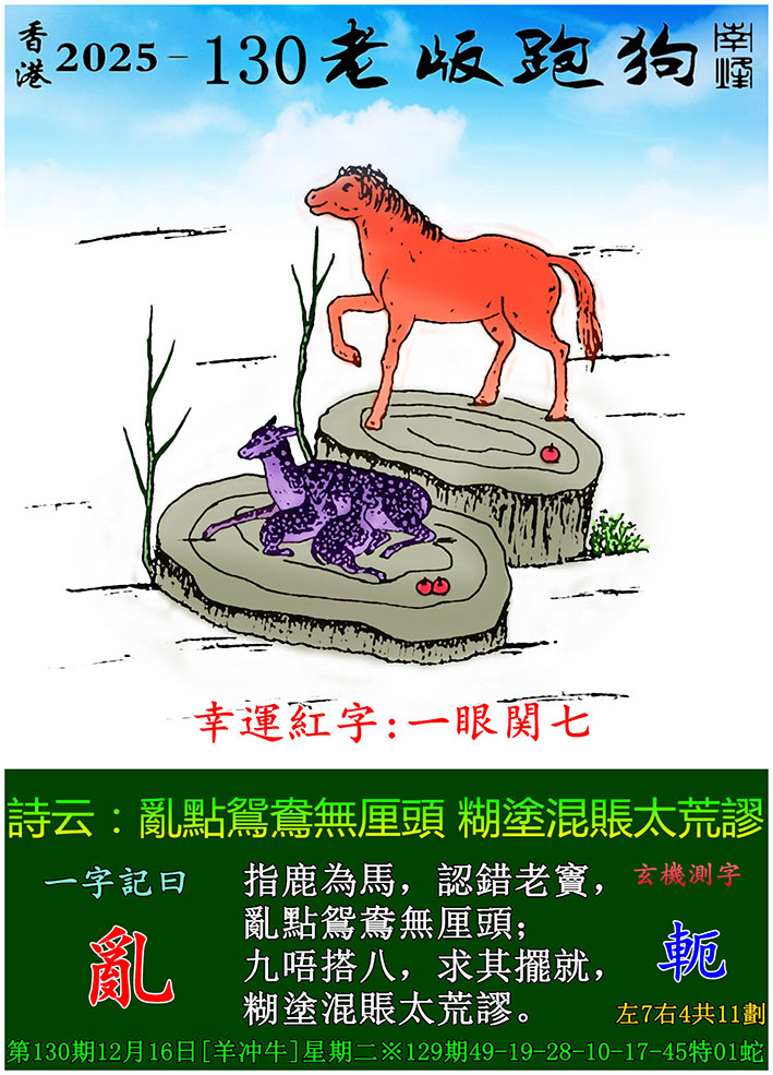 | 主题 :130期老版跑狗一字記之曰:【亂】 玄機測字:《軛》 |
