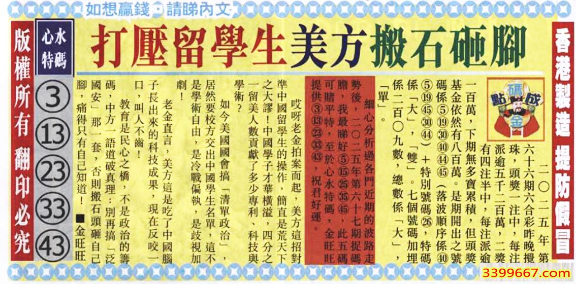067期:金旺旺信箱彩民推荐→→《祝你身心健康 前路光明》