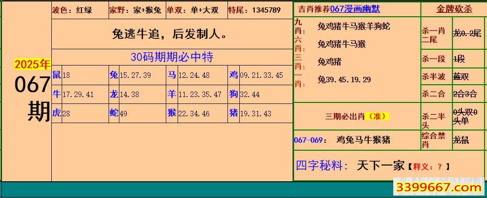 主题 :067期:小鱼儿30码期期中+幽默猜测