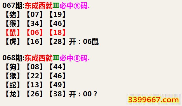 068期:东成西就Ⅲ必中⑧码