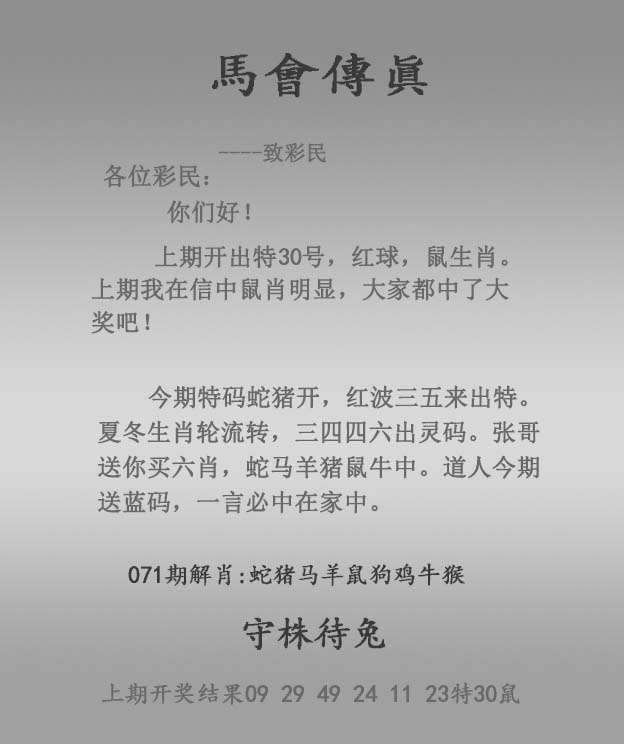 071期:正马会传真