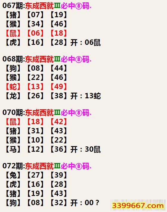072期:东成西就Ⅲ必中⑧码