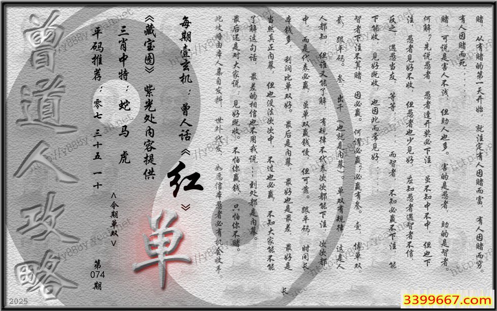 | 主题 :074期藏寶圖 新:烛烬香残帘半卷 老:远客初闻已断肠 禁:猪 禁:3尾 |