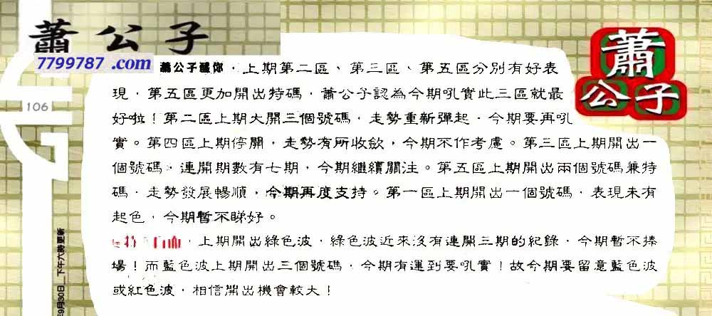 主题 :106期:老总论码/萧公子/林大师/五行夺码 |