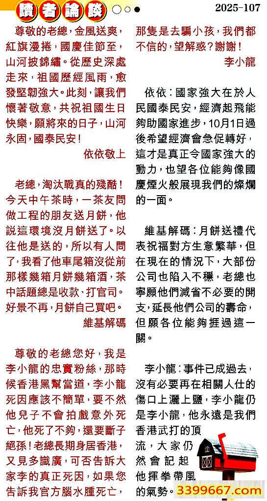 主题 :107期:彩民推荐〖貼信讀者論壇〗 |