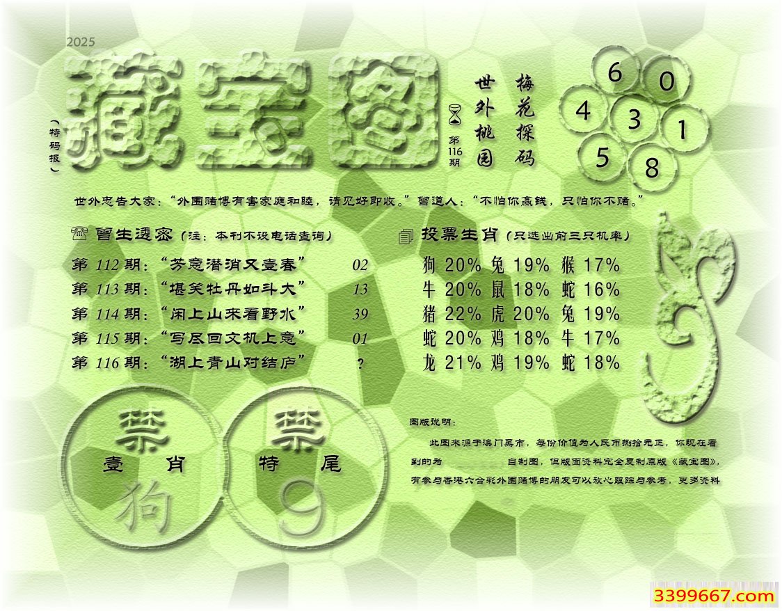 | 主题 :116期藏寶圖 新:心随黄雀绕檐飞 老:湖上青山对结庐 禁:狗 禁:9尾 |
