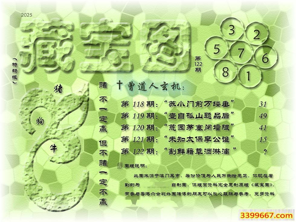 | 主题 :122期藏寶圖 新:割鲜籍草酒淋漓 老:日暮沙场飞作灰 禁:猴 禁:0尾 |