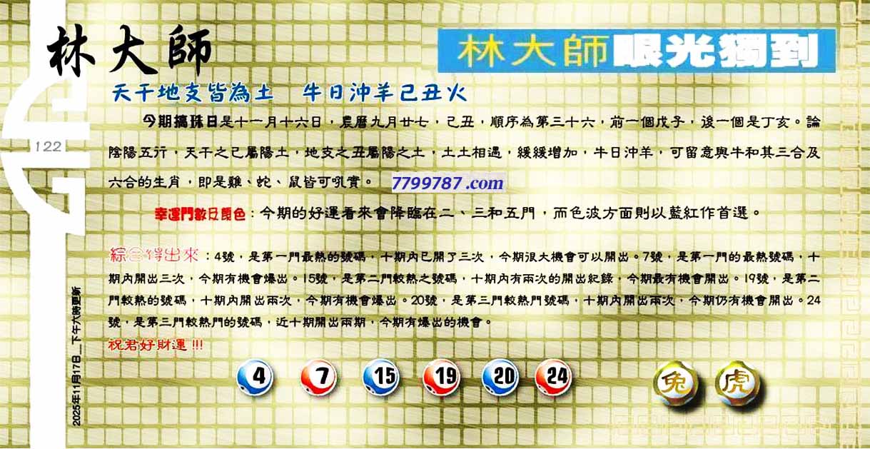 | 主题 :122期:六合皇金句/老总论码/萧公子/林大师/五行夺码/老总信箱截 |