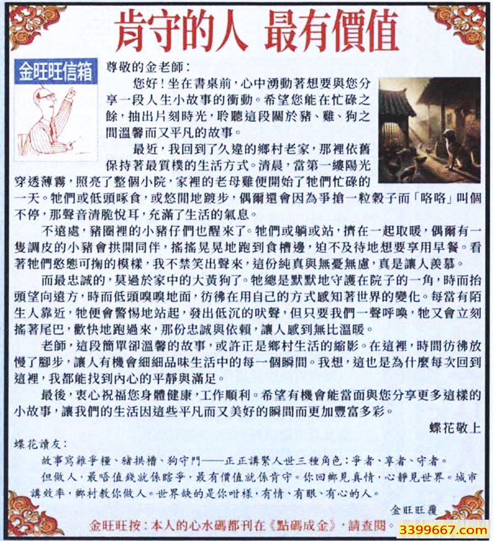 | 主题 :004期:金旺旺信箱彩民推荐→→《肯守的人 最有價值》 |