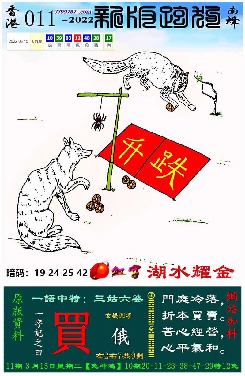 主题 :094期:新版跑狗一字記之曰【估】 玄機測字:【豹】 |