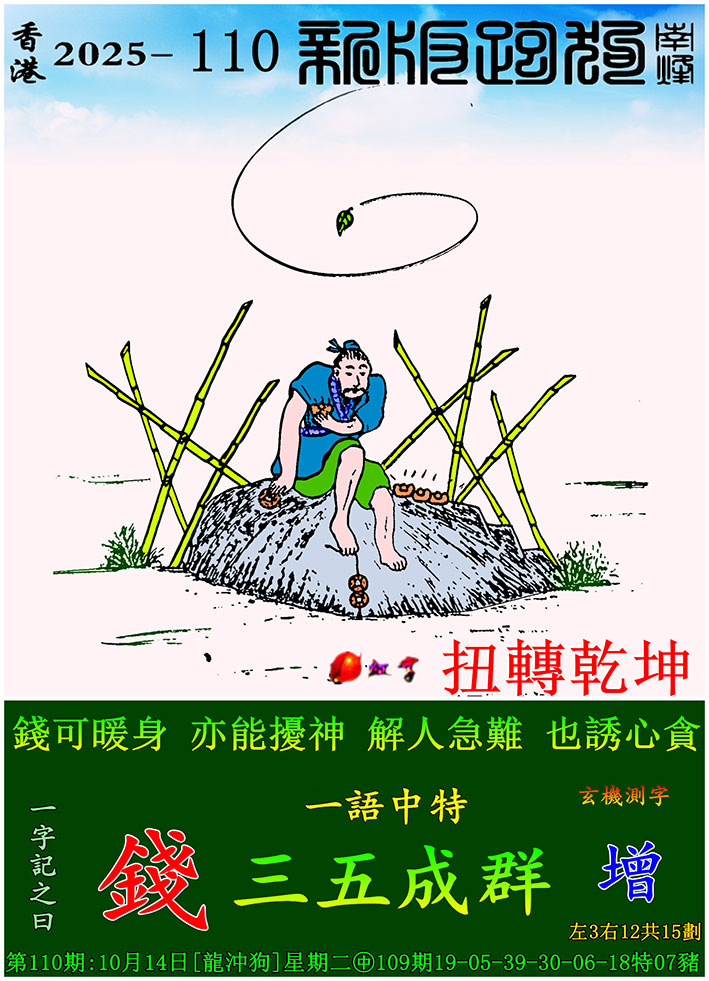 | 主题 :110期:新版跑狗一字記之曰【錢】 玄機測字:【增】 |