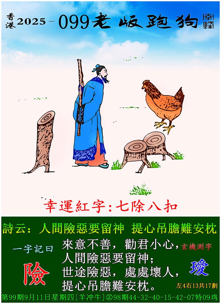 主题 :099期老版跑狗一字記之曰:【險】 玄機測字:《璦》 |