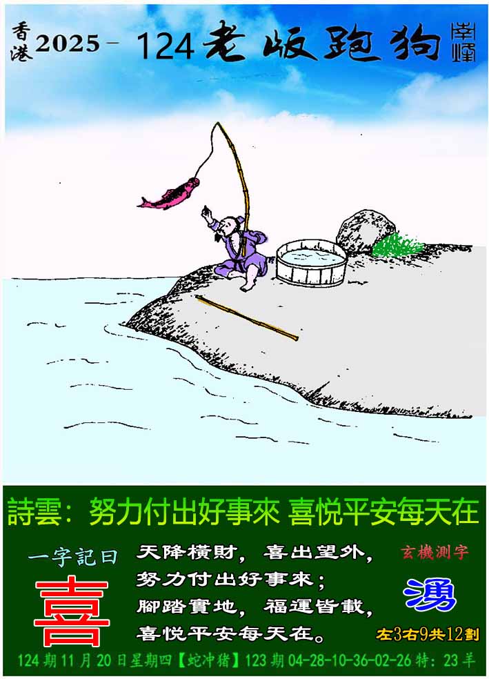 主题 :124期老版跑狗一字記之曰:【喜】 玄機測字:《湧》