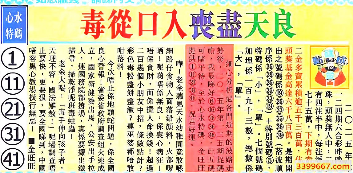 | 主题 :125期:金旺旺信箱彩民推荐→→《識黃連苦寒不如識人情冷暖》 |