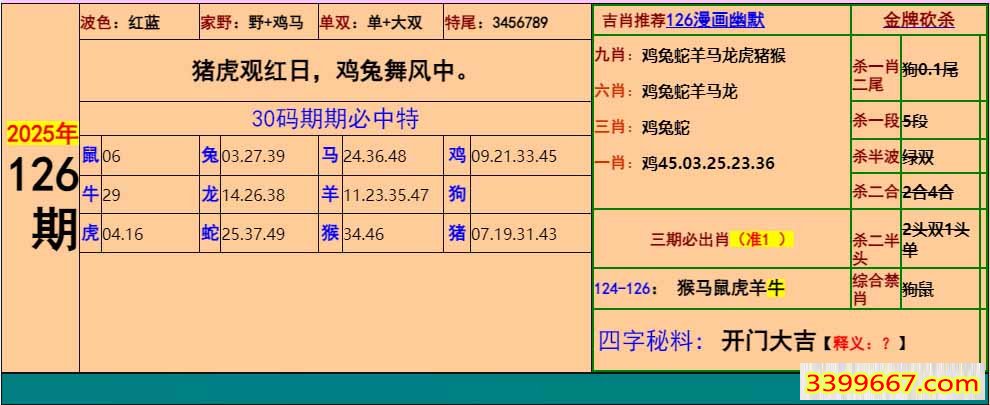 主题 :126期:小鱼儿30码期期中+幽默猜测