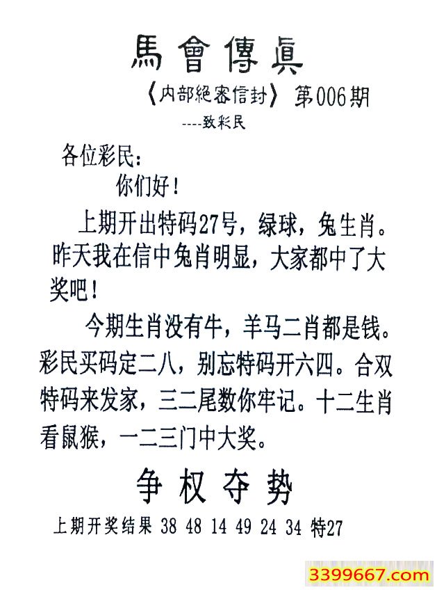 006期:首发推荐:≮馬會傳眞≯→(香港正版)