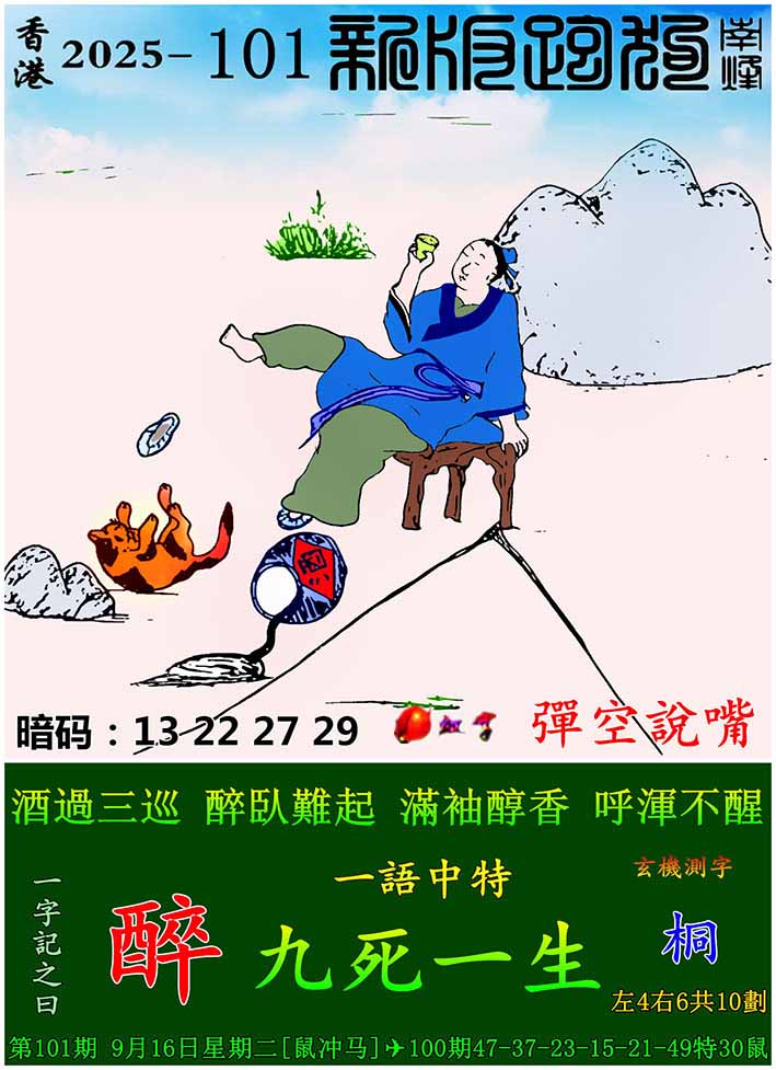 主题 :101期:新版跑狗一字記之曰【醉】 玄機測字:【桐】 |