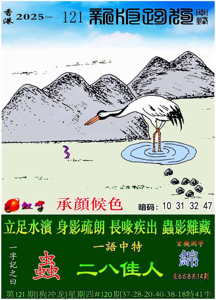 | 主题 :121期:新版跑狗一字記之曰【蟲】 玄機測字:【綿】 |